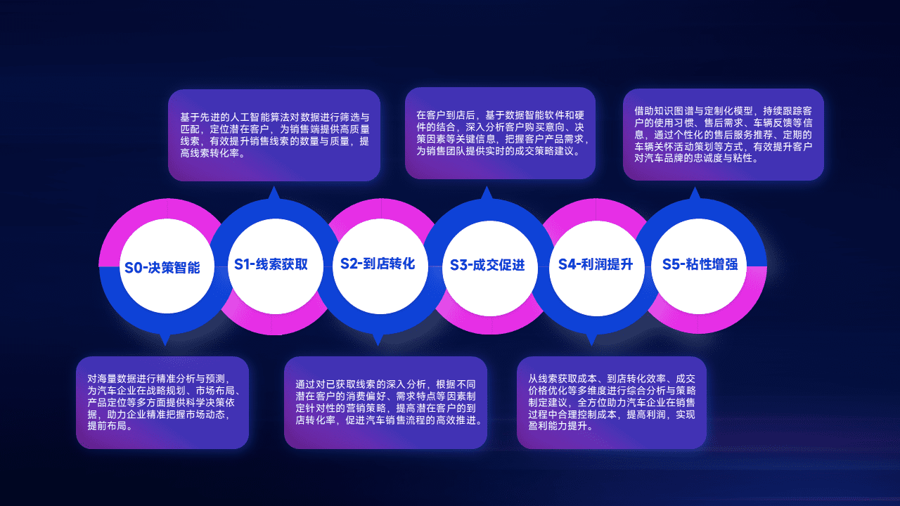 通过拓宽潜在客户来源、、优化线索分配并提高到店转化率,,,以增强销售效率。。。同时,,,利用线索数据不断优化分析模型,,,,有效提升转化率,,,,扩大营销影响力。。。